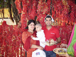 Nesta cerimónia, o Guru salpicou-os de água santa com uma espada, que